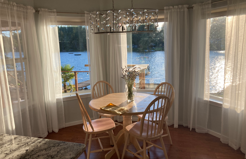 Peaceful Lakefront Luxury: Hot Tub, Sandy Beach, King Bed, Stocked Kitchen